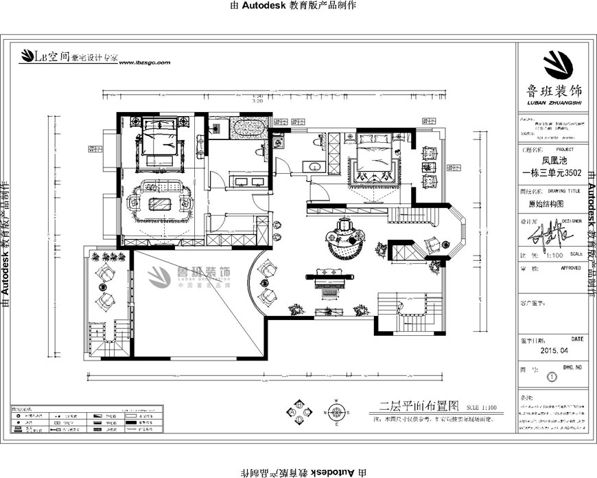 ▲曲江鳳凰池複式380平米古典歐式劉燕飛主筆(bǐ)設計——二樓平面布局圖設計