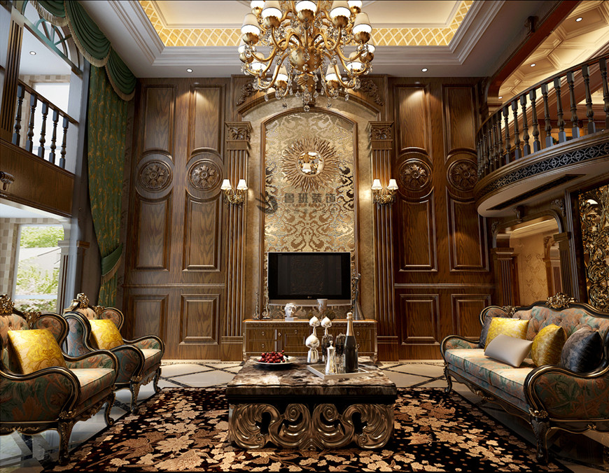 ▲曲江鳳凰池複式380平米古典歐式劉燕飛主筆(bǐ)設計——客廳設計效果圖
