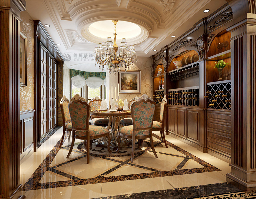▲曲江鳳凰池複式380平米古典歐式劉燕飛主筆(bǐ)設計——餐廳設計效果圖