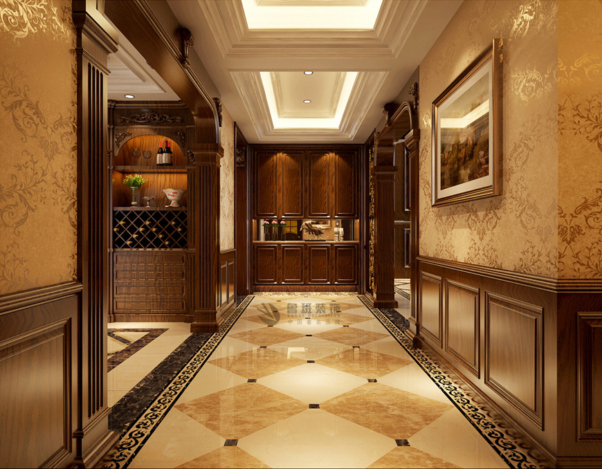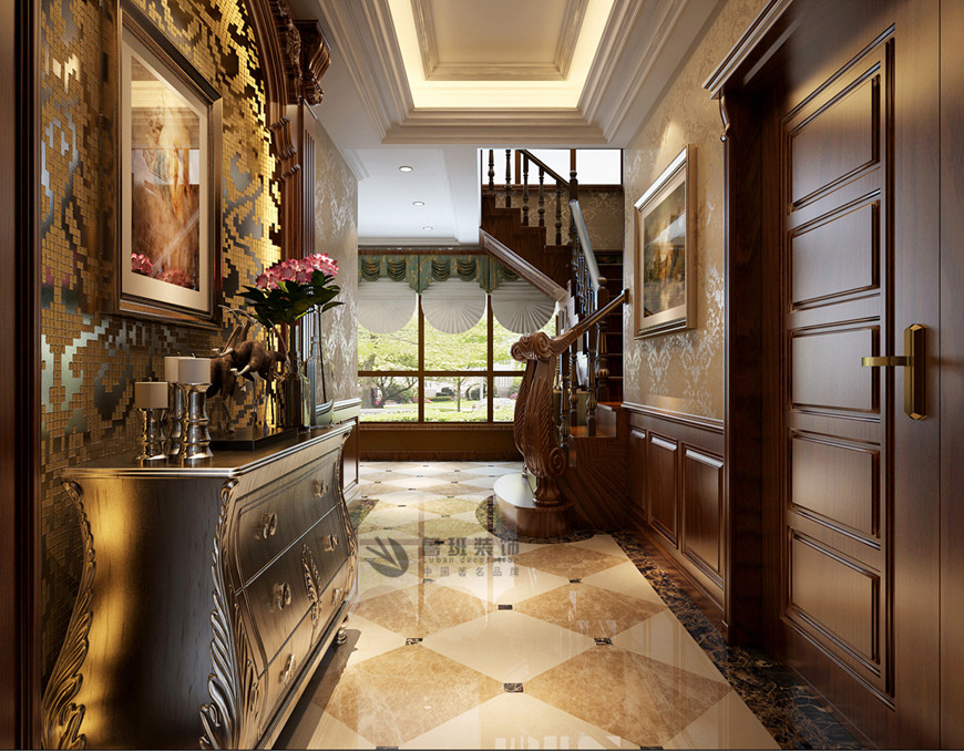 ▲曲江鳳凰池複式380平米古典歐式劉燕飛主筆(bǐ)設計——一樓門廳設計效果圖