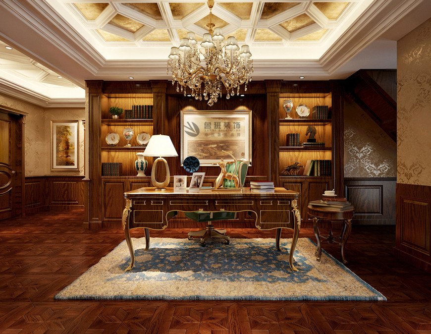 ▲曲江鳳凰池複式380平米古典歐式劉燕飛主筆(bǐ)設計——書房裝(zhuāng)修設計效果圖