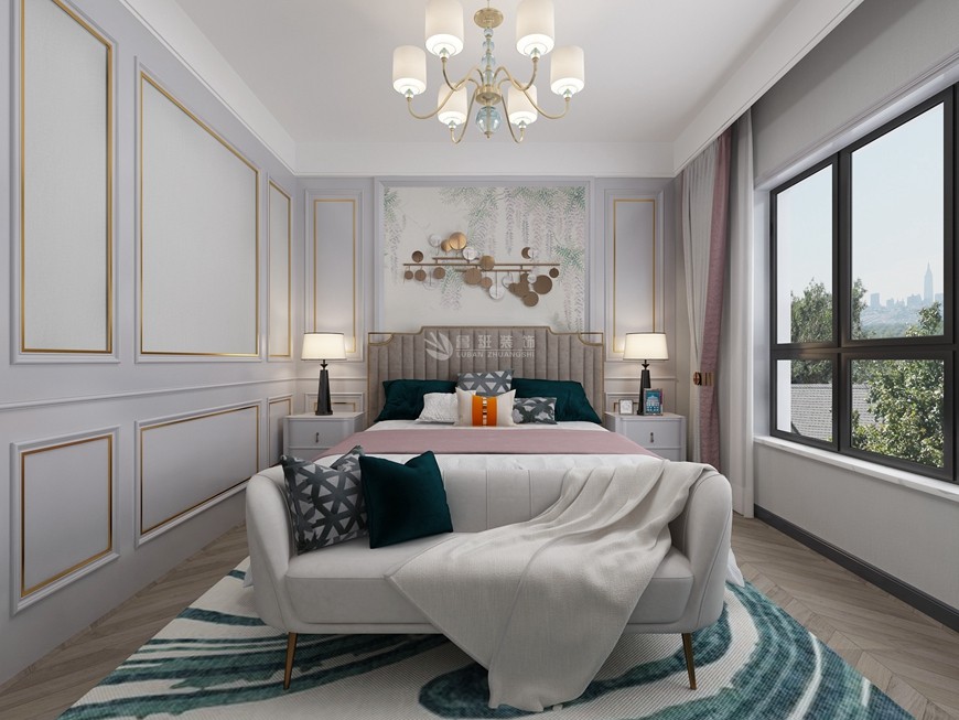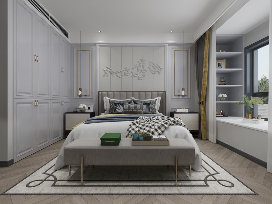 ▲【西安(ān)魯班裝(zhuāng)飾】榮民(mín)宮園學(xué)府148平米現代美式,溫馨又(yòu)儒雅~主卧設計