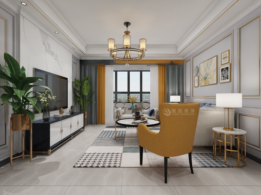 ▲【西安(ān)魯班裝(zhuāng)飾】榮民(mín)宮園學(xué)府148平米現代美式,溫馨又(yòu)儒雅~客廳設計