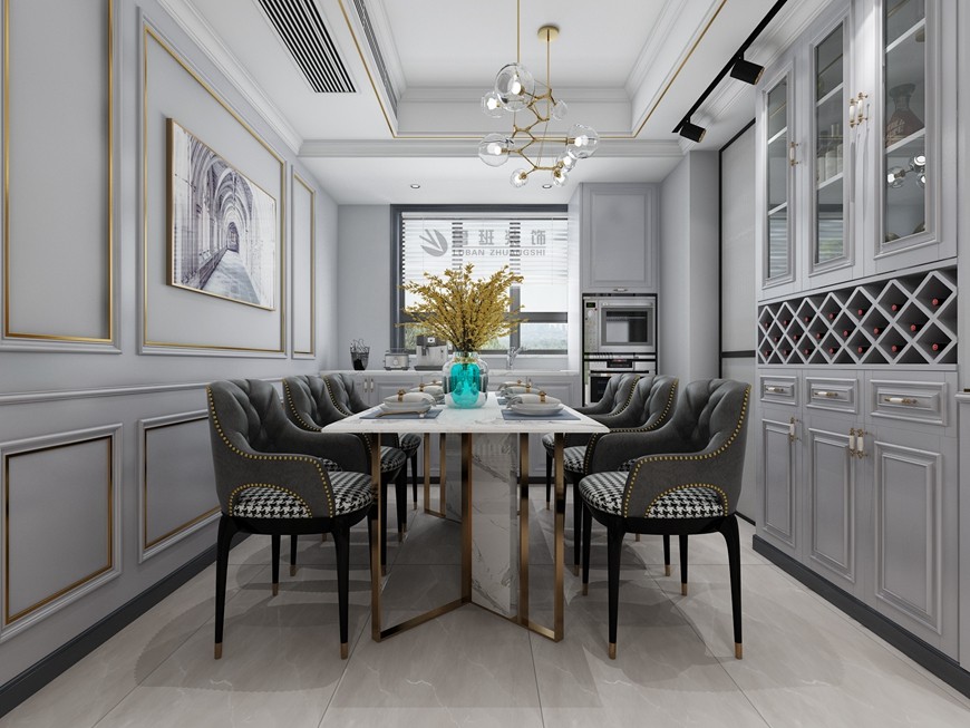 ▲【西安(ān)魯班裝(zhuāng)飾】榮民(mín)宮園學(xué)府148平米現代美式,溫馨又(yòu)儒雅~餐廳設計